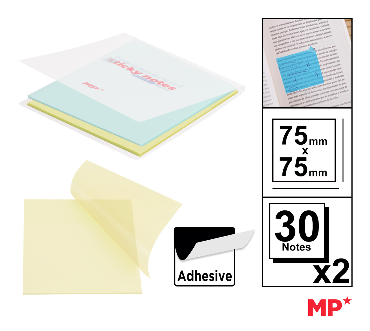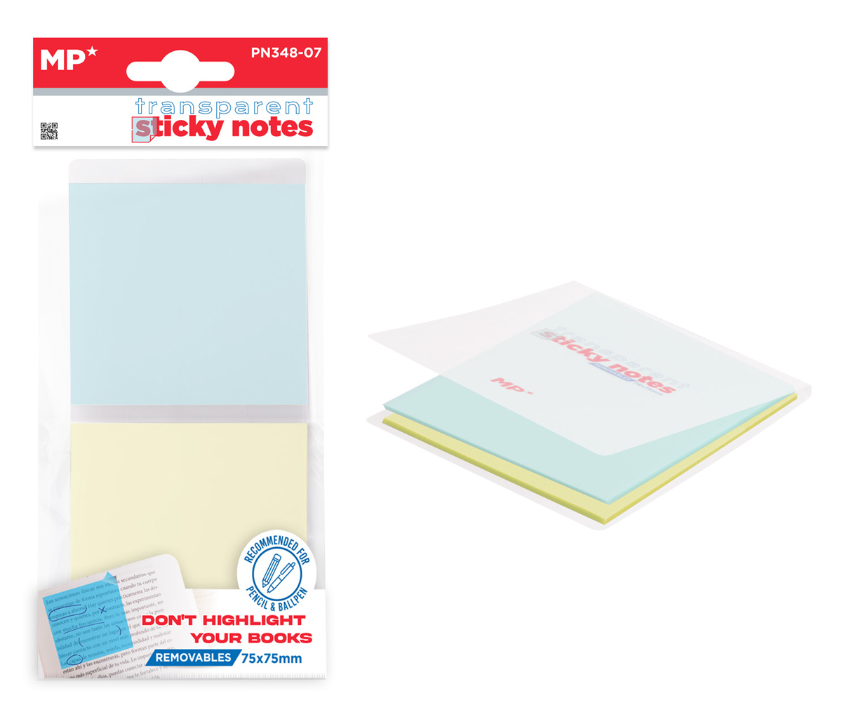 MP αυτοκόλλητα χαρτάκια σημειώσεων PN348-07, διάφανα, 75x75mm, 60τμχ