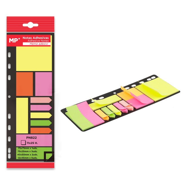 MP αυτοκόλλητα χαρτάκια σημειώσεων PN822, 11x 25τμχ, χρωματιστά