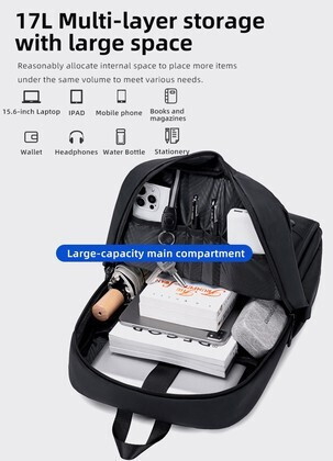 Backpack GOLDEN WOLF GB00705 with 15.6 inch laptop compartment 17L Black