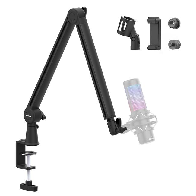 PRIZMORA βάση γραφείου για μικρόφωνο/smartphone AS26 με βραχίονα 2 σημείων, μαύρη