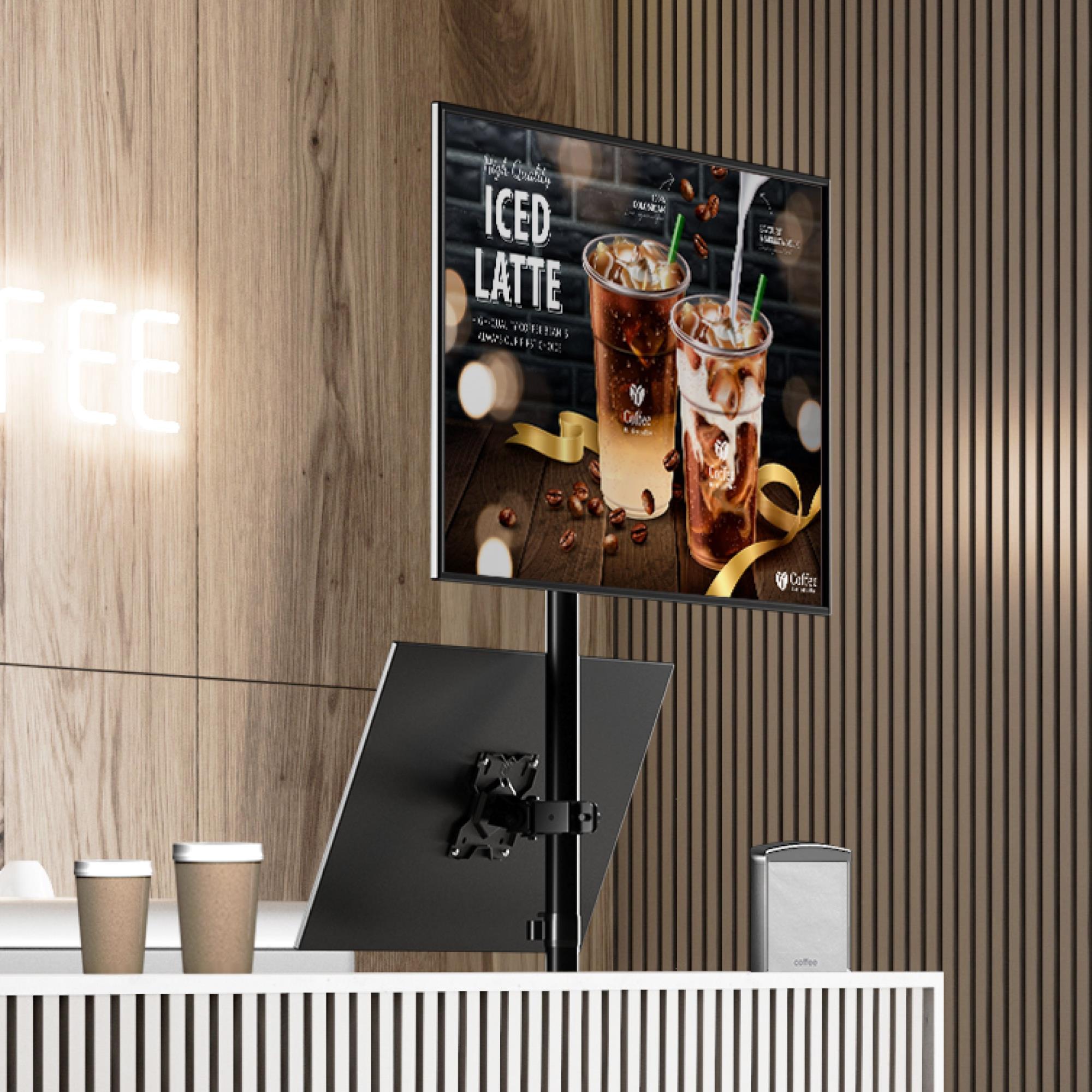 Designed for ease of use, the ONKRON D208E-B supports a variety of VESA mounting patterns from 75x75 mm to 100x100 mm, making it compatible with a wide range of flat and curved LCD/LED/OLED/QLED screens. Its dual arm configuration allows for both landscape and portrait orientations with a remarkable 360° rotation.