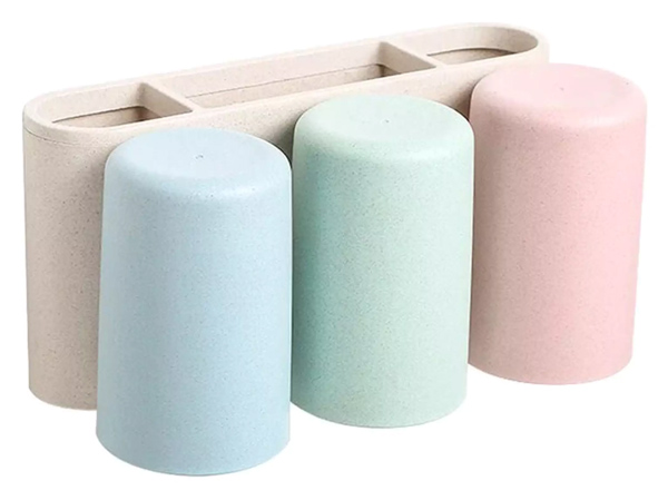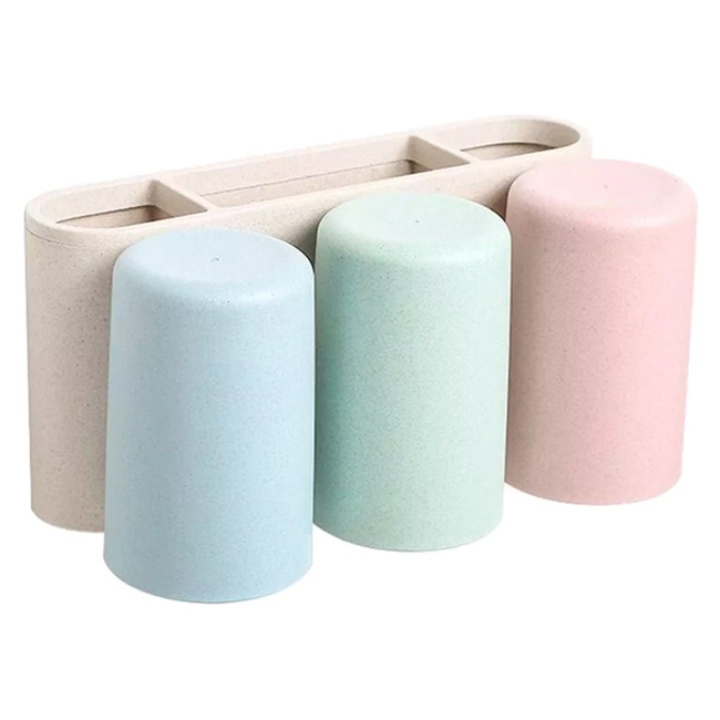 Βάση οδοντόβουρτσας με 3 ποτήρια της Ecoco και κομψή εμφάνιση, κατασκευασμένη από Eco-friendly υλικά. Τοποθετείται εύκολα στον τοίχο με αυτοκόλλητα τα οποία αποσπώνται από την βάση, διευκολύνοντας τον καθαρισμό της. Διαθέτει 3 ποτήρια και 3 θήκες όπου μπορούν να τοποθετηθούν οδοντόβουρτσες, οδοντόκρεμες ή αλλά αντικείμενα υγιεινής.