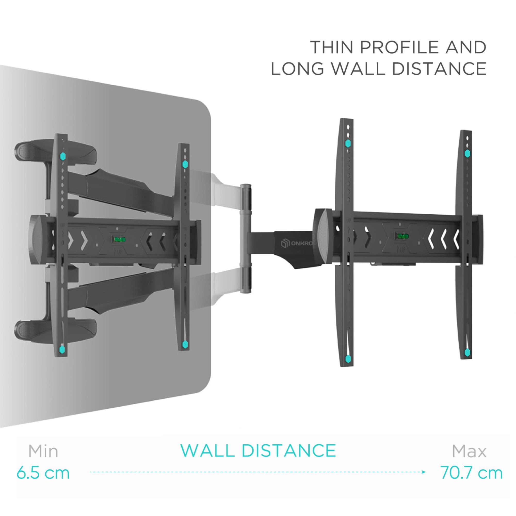 The ONKRON NP47-B Full Motion TV Wall Mount is designed to elevate your viewing experience with its exceptional features. Suitable for televisions ranging from 40" to 75", this wall mount can support up to 35 kg, ensuring a sturdy hold for a range of TV types.