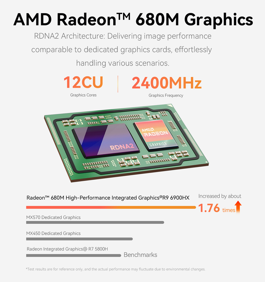 Με εξαπύρινο επεξεργαστή AMD Ryzen 9 6900HX, μνήμη RAM 24GB, 500GB M.2 SSD και προεγκατεστημένο λειτουργικό Windows 11 pro, το EQR6 προσφέρει πολύ ομαλή εμπειρία λειτουργίας για να εργαστείτε, να δείτε ταινίες, να παίξετε παιχνίδια ή να περιηγηθείτε στο διαδίκτυο, από το σπίτι ή το γραφείο.