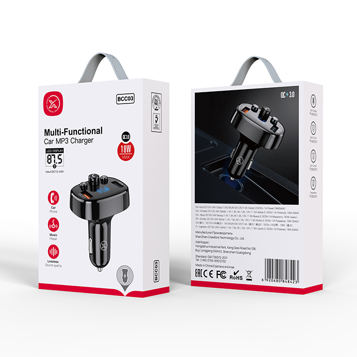 Bluetooth FM Transmitter XO BCC03 with QC3.0 Charging Port