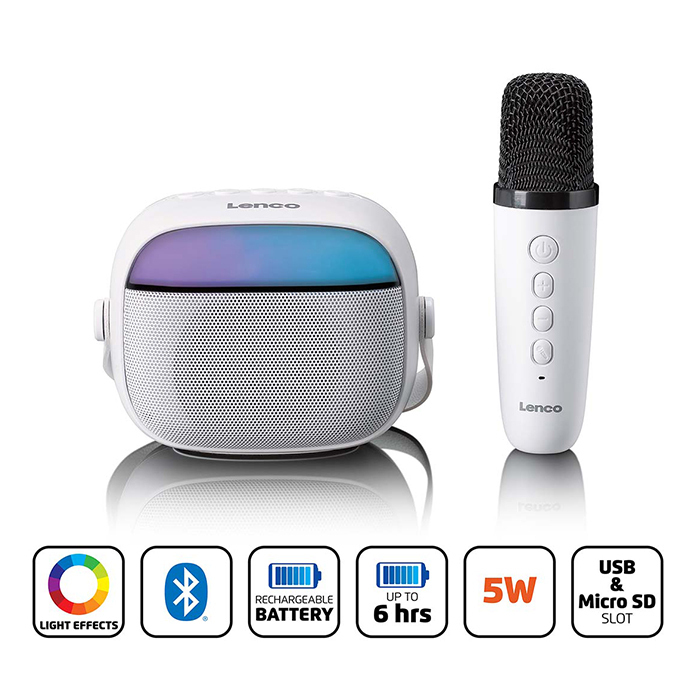Bluetooth Speaker with Wireless Microphone RGB Lighting and Karaoke Function LENCO BTC 020WH
