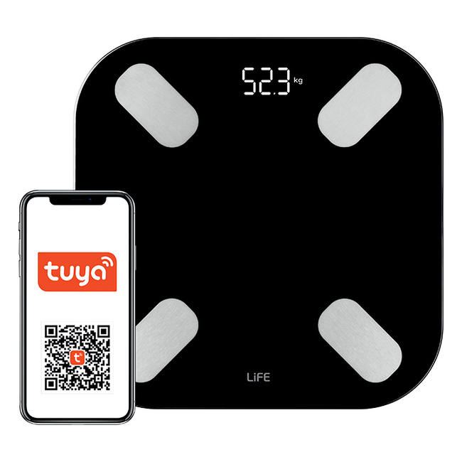 The Bluetooth Tuya Smart Γυάλινη Ψηφιακή Ζυγαριά Μπάνιου, also known as the LIFE FIT SMART BT, is a state-of-the-art electronic bathroom scale that offers precise weight measurements and comprehensive health monitoring.