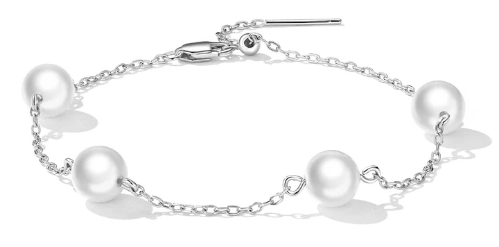 Κομψό βραχιόλι, διακοσμημένο με 4 εντυπωσιακές πέρλες, λευκού χρώματος.