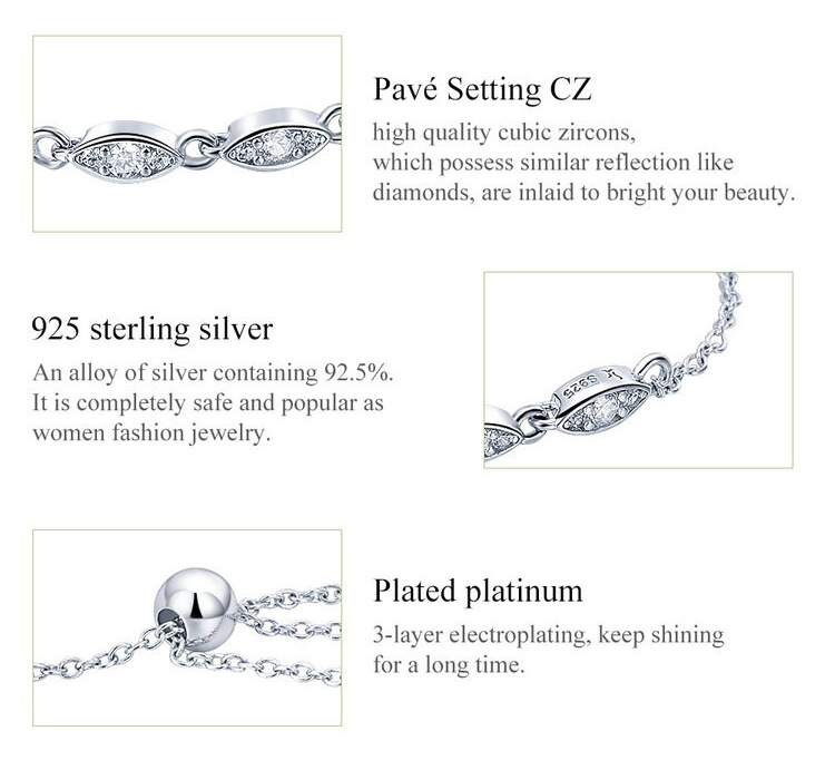 BAMOER βραχιόλι SCB086 με κυβική ζιρκόνια, ασήμι 925, ασημί
