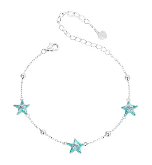 Κομψό βραχιόλι Bamoer, διακοσμημένο με ασημένιες μπίλιες και μενταγιόν σε σχήμα κοχύλι βεραμάν χρώματος.