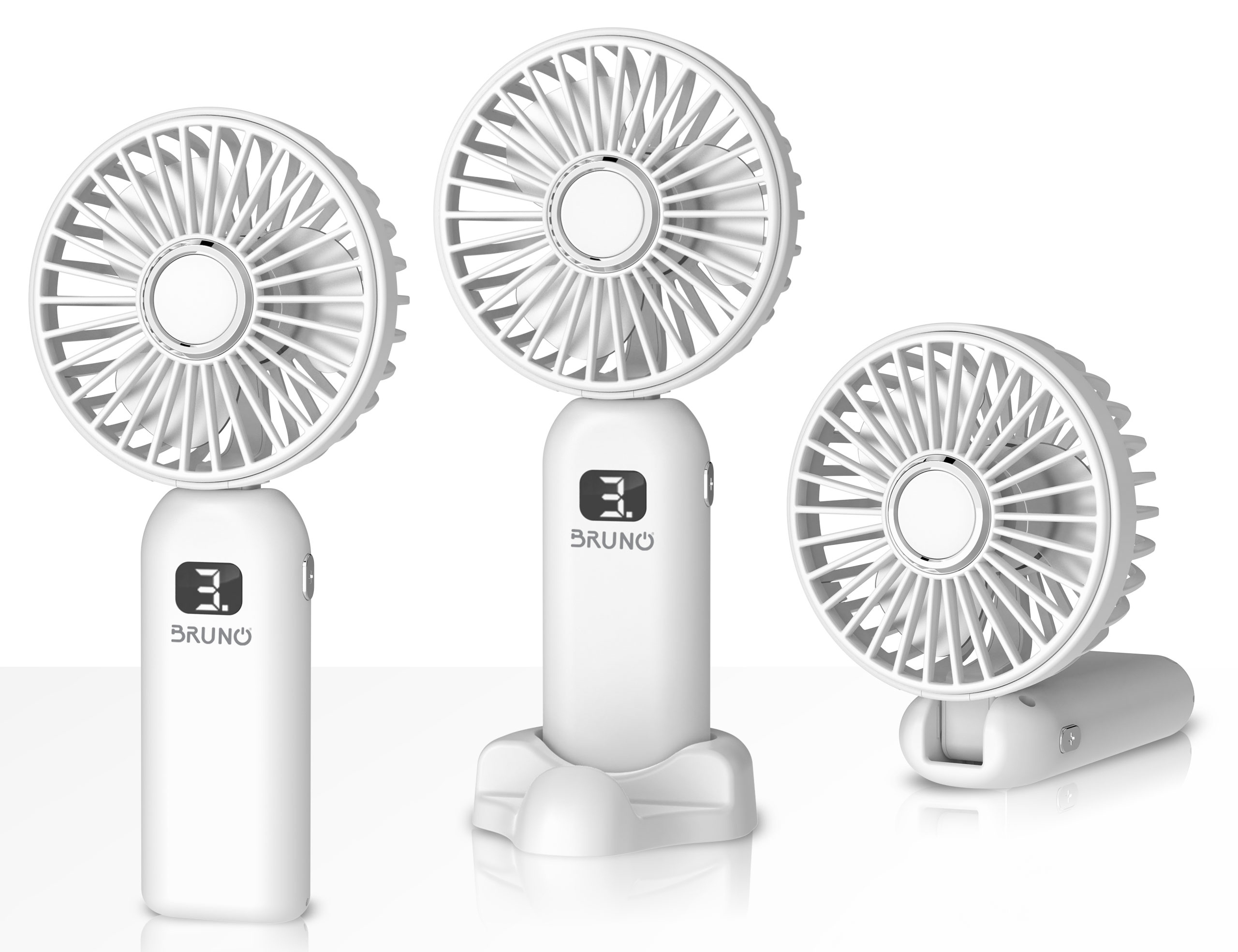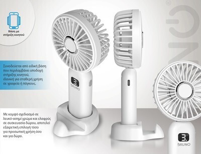 BRUNO φορητός ανεμιστήρας χειρός επαναφορτιζόμενος BRN-0236, με βάση, λευκός-γκρι