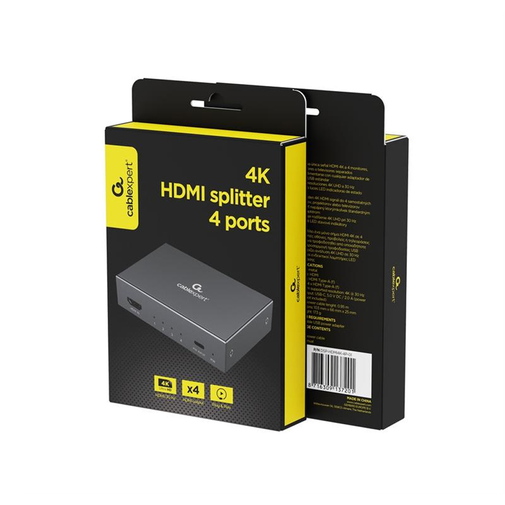 CABLEXPERT Audio Video Splitter 1x4 HDMI Splitter 4 Ports Black
