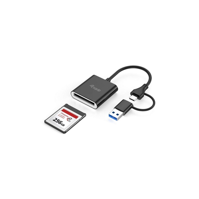 The Card Reader Equip CFexpress Type B USB-C/-A Adapt. 10Gbps is a cutting-edge USB 3.2 Gen 2 card reader designed for efficiency and speed. Compatible with CFexpress Type B memory cards, it supports high-speed data transfers of up to 10 Gbps, making it ideal for handling large files such as high-resolution RAW photos and 4K/8K video.