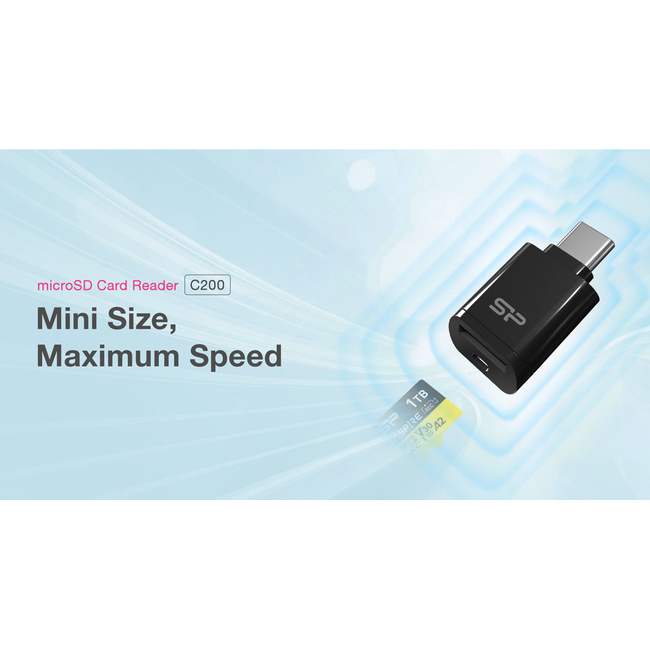 SILICON POWER card reader C200 για micro SD, USB-C, USB 3.2, 180/165MBps, μαύρο