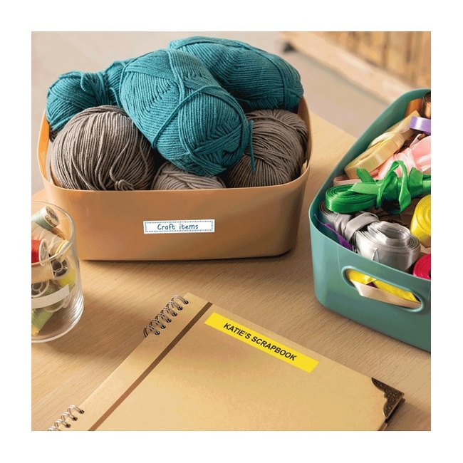 Measuring 1/2" (12mm) wide and 13.1 feet (4 meters) long, this black-on-yellow tape is perfect for a variety of labeling needs. Notable features include: