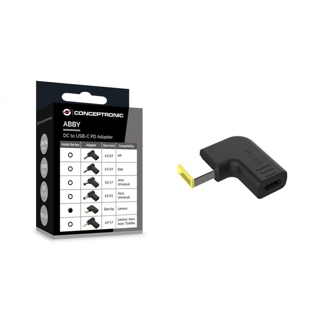The CONCEPTRONIC Adapter USB-C to DC, Lenovo Slim Tip 18-20V is a versatile device that allows for the seamless connection of Lenovo laptops to USB-C Power Delivery (PD) chargers. This adapter is designed with a specific focus on efficiency and ease of use.
