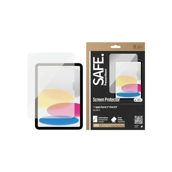 The PanzerGlass SAFE Screen Protector is engineered to provide superior protection for your Apple iPad, ensuring durability and safety against everyday hazards. This ultra-wide fit design is specifically tailored for various Apple iPad models, including the 10.9" and iPad 11" A16, offering comprehensive coverage of the screen while allowing room for a case.