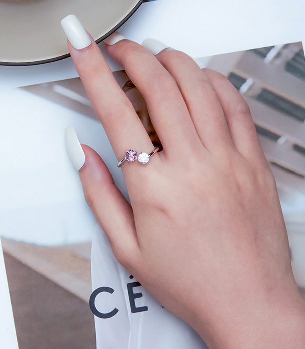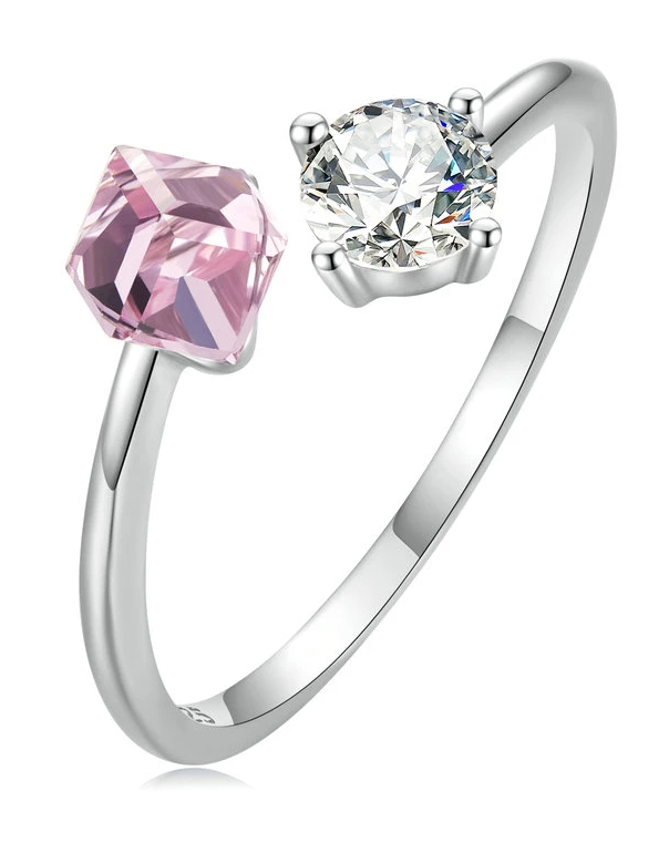 Εντυπωσιακό δαχτυλίδι διακοσμημένο με αστραφτερή κυβική ζιρκόνια, λευκού και ροζ χρώματος, η οποία αντανακλά μοναδικά το φως και προσφέρει λάμψη στο κόσμημα.