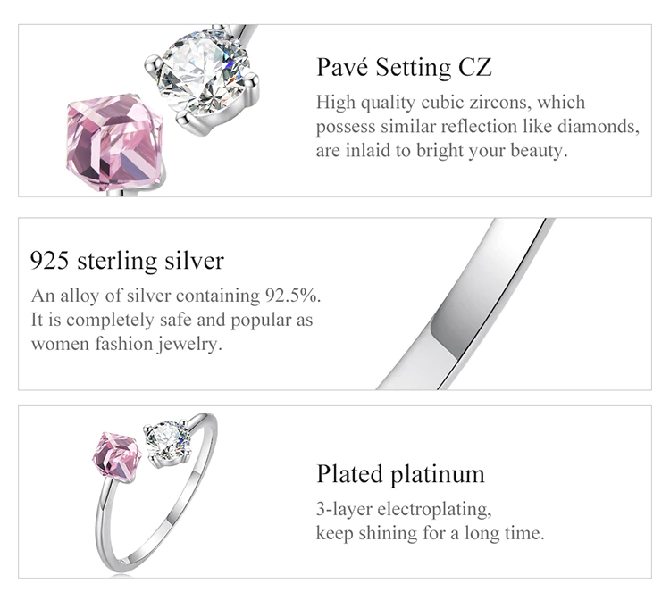 BAMOER δαχτυλίδι BSR291, κυβική ζιρκόνια, ανοιγόμενο, ασήμι 925, ασημί
