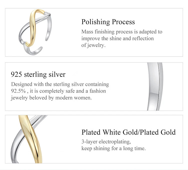 BAMOER δαχτυλίδι BSR622-E, ανοιγόμενο, ασήμι 925, ασημί/χρυσό