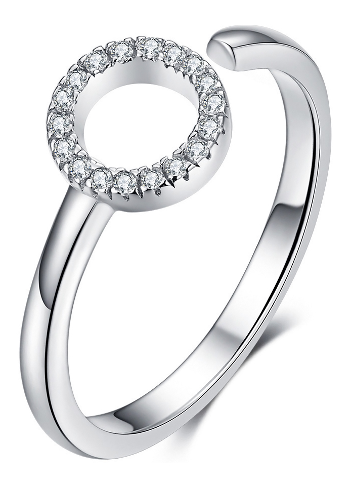 BAMOER δαχτυλίδι SCR545 με κυβική ζιρκόνια, ανοιγόμενο, ασήμι 925, ασημί