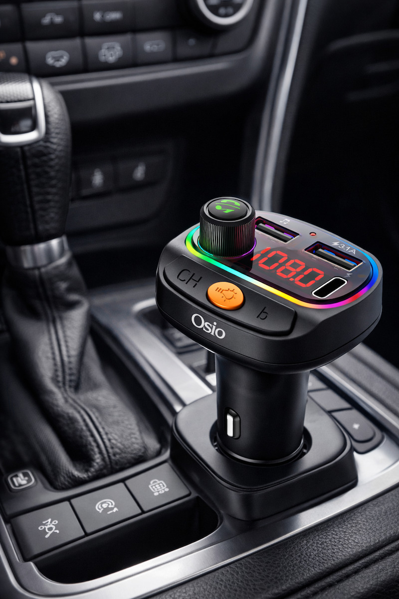 Default OSIO Bluetooth FM Transmitter Car Kit Hands Free 7 Color Lighting Black