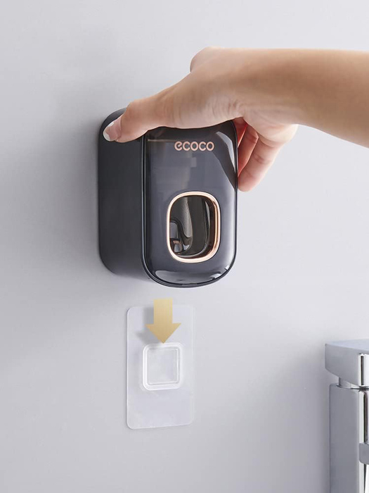 Τοποθετείται εύκολα στον τοίχο με αυτοκόλλητη βάση η οποία αποσπάται από τον διανεμητή. Με τον διανεμητή θα βάλετε εύκολα οδοντόκρεμα στην οδοντόβουρτσα σας, σπρώχνοντας την οδοντόβουρτσα στην ειδική εσοχή του διανεμητή.