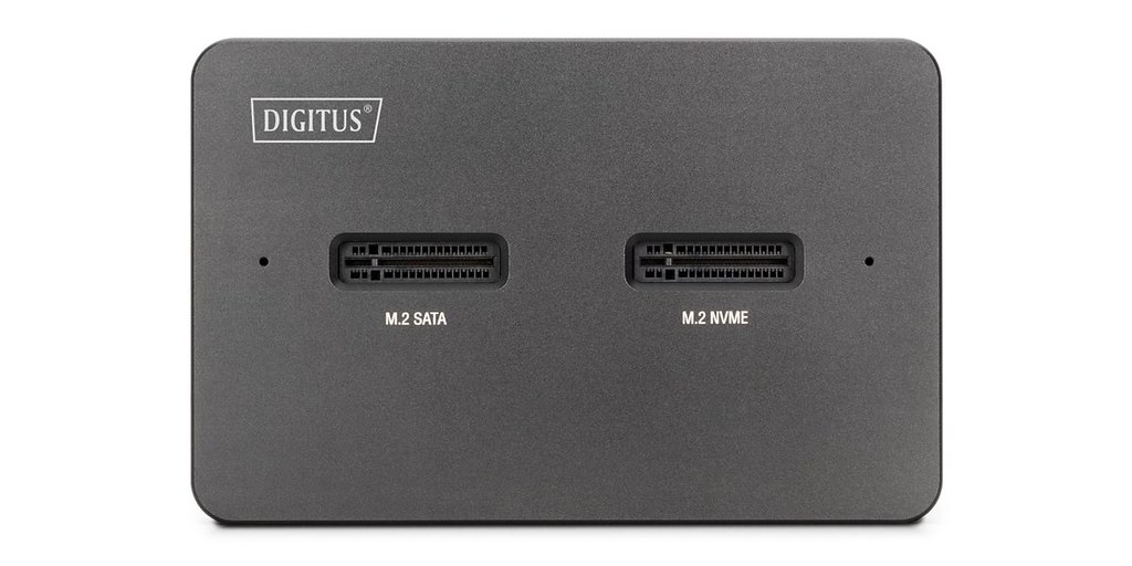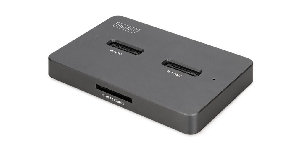The DIGITUS DA-71546-1 is a versatile 3-in-1 docking station that efficiently manages both NVMe and SATA M.2 SSDs, while incorporating an integrated SD Express card reader.