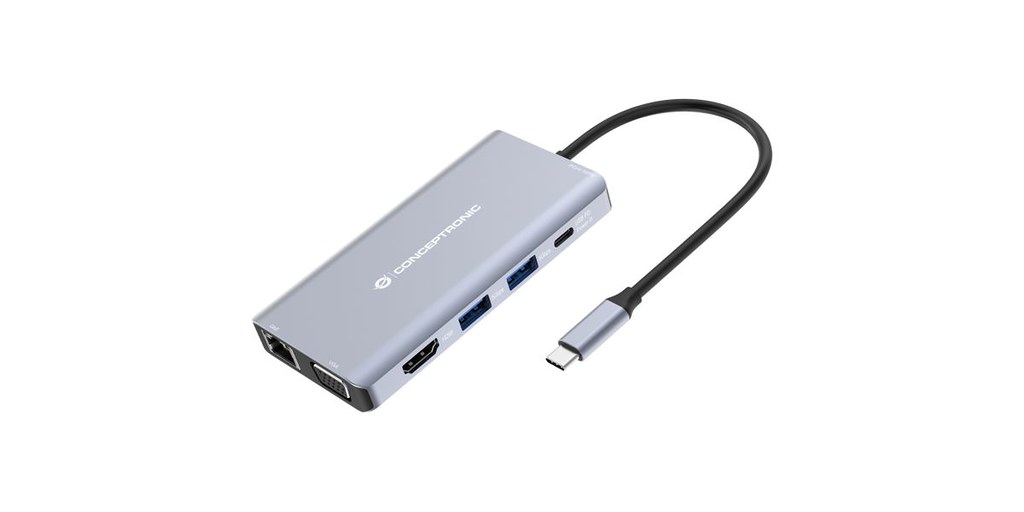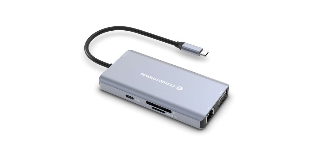 The Conceptronic 10-1 Docking Station (DONN20G) is a versatile multiport adapter designed to enhance the connectivity of USB-C devices. Its compact design and extensive features make it perfect for professionals and students alike.