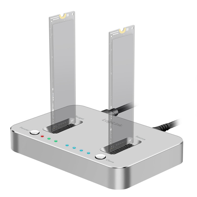 The LogiLink QP0033 is a versatile docking station designed specifically for two M.2 NVMe SSDs. It provides seamless connectivity to USB-C enabled devices and supports common NVMe M.2 SSD formats, including 2230, 2242, 2260, and 2280. This docking station is compatible with both PCIe and SATA NGFF SSDs.