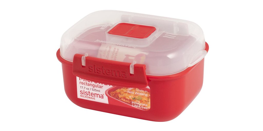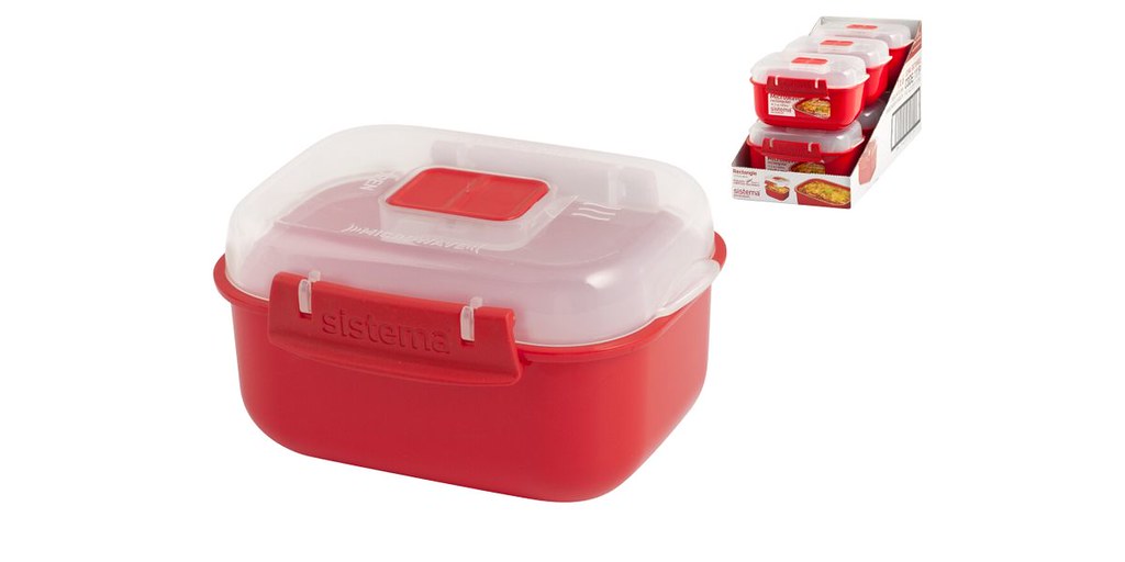 The Sistema Microwave Square with Valve, 525 ml, Red is a specialized food container that excels in microwave cooking and reheating. This rectangular container is designed with a capacity of 525 ml, making it ideal for various food items.