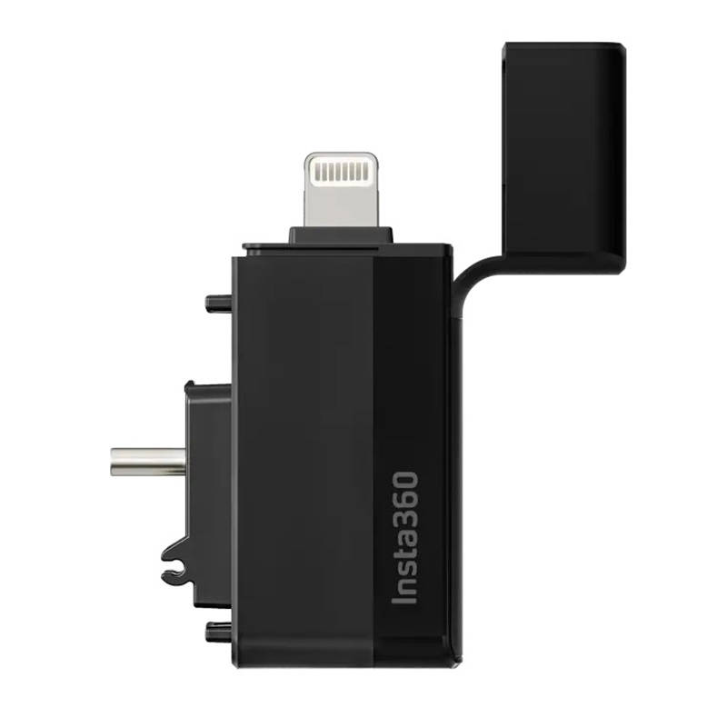 Enjoy high-speed file transfer without the need to connect via Wi-Fi. Created with the Insta360 X3 in mind, the Quick Reader can act as the camera's external memory - just insert a microSD card (not included). This ensures that you won't run out of space for your videos! When you're done recording, connect the accessory to your phone and conveniently copy selected footage. The camera doesn't need to be turned on at that time, which will help you save its battery power. The Quick Reader supports Plug&Play and provides a fast, stable connection. What's more, it is equipped with 2 connectors - USB-C and Lightning, which means it is compatible with Android and iOS devices. Now uploading and editing content will become even easier!