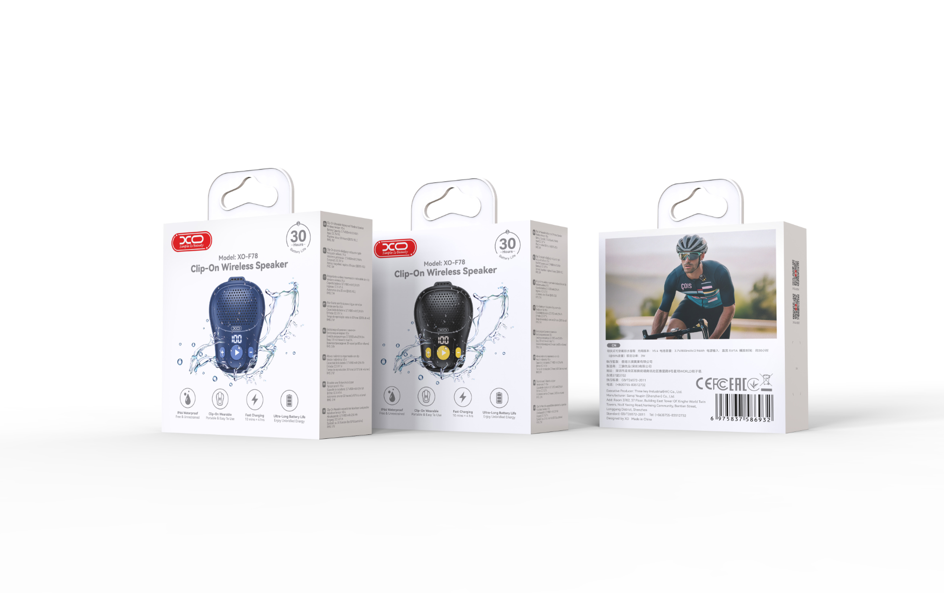 XO Bluetooth Clip-On Wearable Waterproof Speaker Black