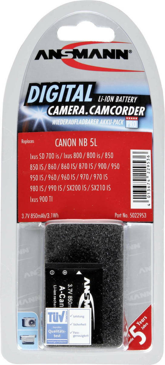 Επαναφορτιζόμενη μπαταρία φωτογραφίας/βίντεο Ansmann A-Can NB-5L