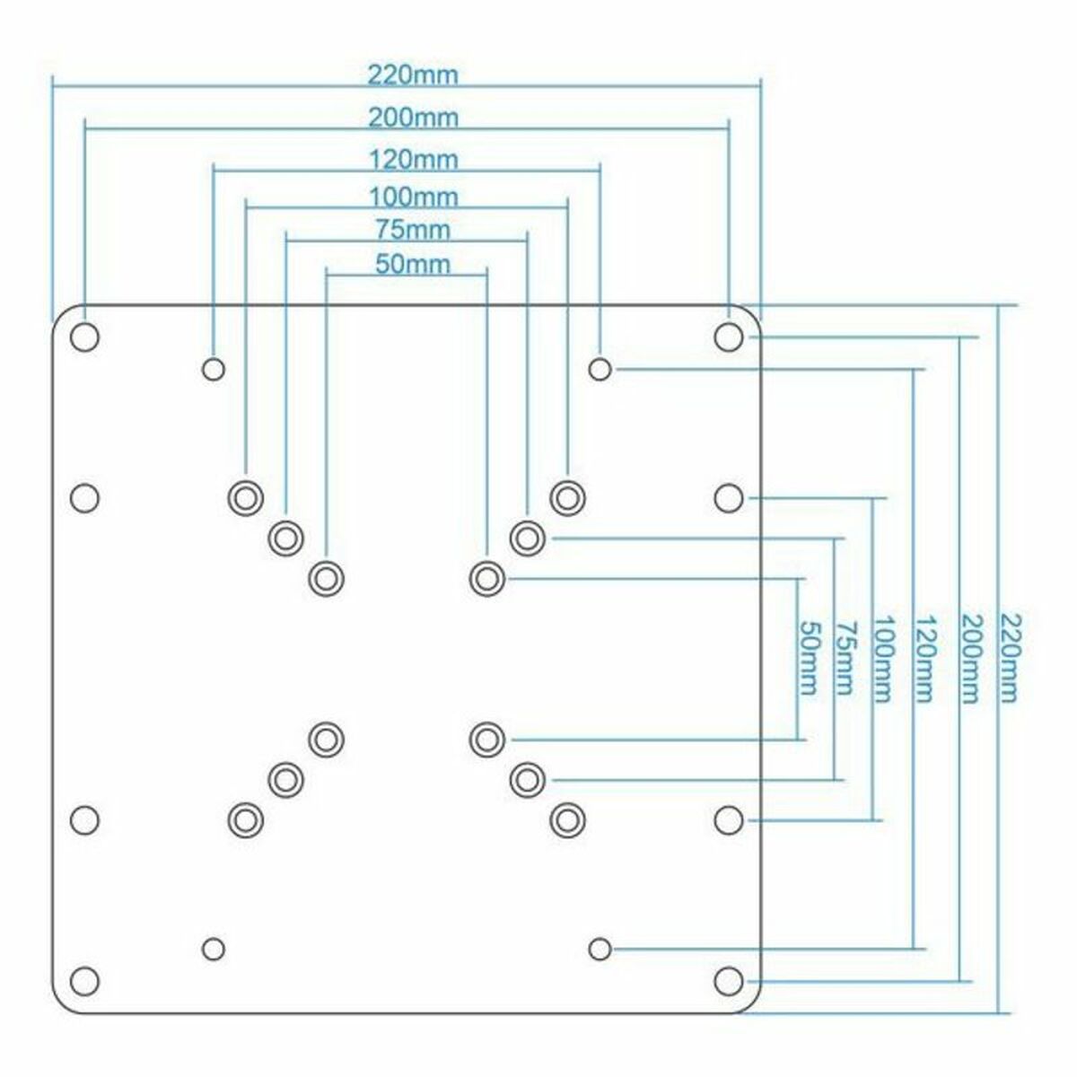 TooQ VMA0200-B. Τύπος προϊόντος: Πλάκα συσκευής, Διεπαφή τοποθέτησης πάνελ: 50 x 50,75 x 75,100 x 100,100 x 200,200 x 100,200 x 200, Συμβατότητα ελάχιστου μεγέθους οθόνης: 58,4 cm (23"). Πλάτος: 220 mm, Βάθος: 220 mm. Ποσότητα ανά συσκευασία: 1 τεμάχια