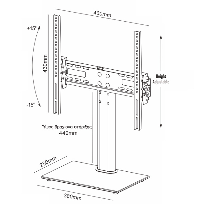- Ρυθμιζόμενο ύψος τοποθέτησης της τηλεόρασης (3 θέσεις)