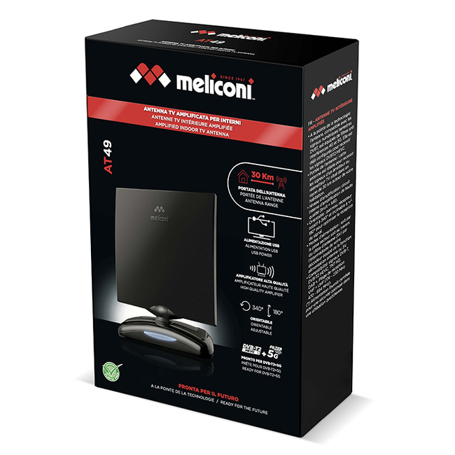 The Meliconi Indoor TV Antenna with 49 dB Amplifier is a compact solution that enhances your television viewing experience. Its capability to receive both analog and digital signals ensures maximum channel accessibility.