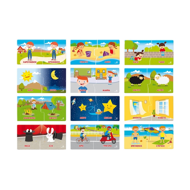 With this game, children will learn to recognize, compare, and logically associate contrasting concepts, such as: