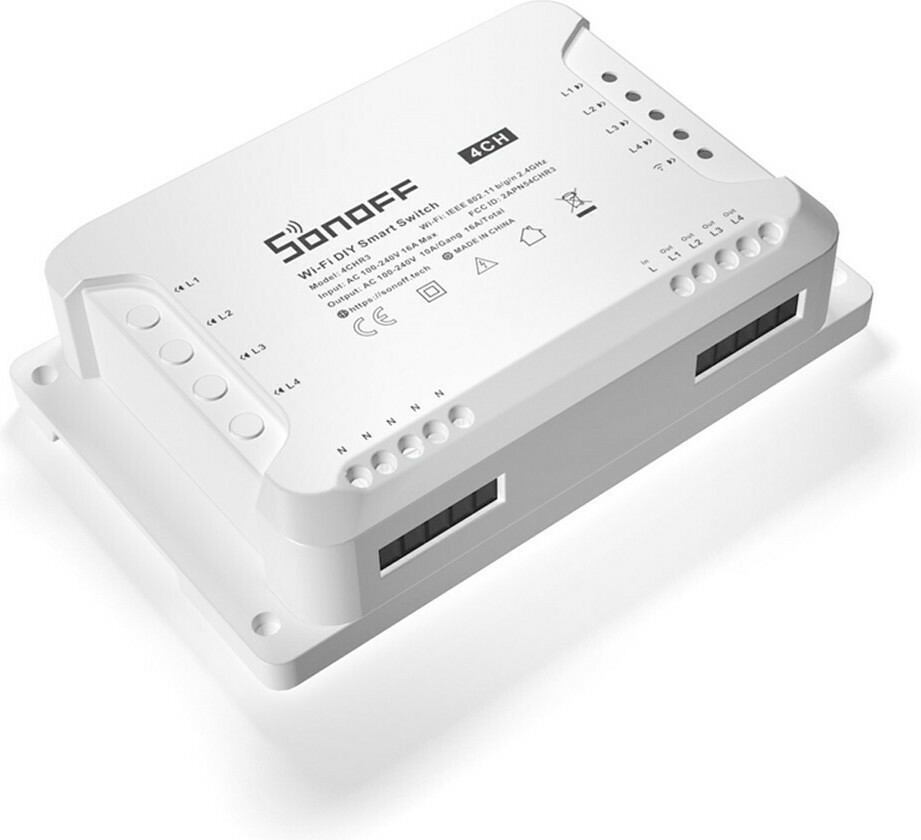 The Sonoff 4CH R3 is a versatile 4-gang Wi-Fi smart switch that seamlessly integrates with your home automation system. With its ability to control various devices, such as lights, appliances, garage doors, and roller blinds, it provides an enhanced user experience.