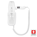 Το Swiss Silent Jet Protect 2000, είναι ένα πρακτικό σεσουάρ μαλλιών ξενοδοχειακού τύπου με ενσωματωμένη επιτοίχια βάση για εξοικονόμηση χώρου και μέγιστη εργονομία. Η εύκολη και γρήγορη τοποθέτηση και αποδέσμευση παρέχει εξαιρετική λειτουργικότητα, καθώς είναι πάντοτε εύκολα προσβάσιμο. Η τεχνολογία Smart Airflow που διαθέτει, βελτιστοποιεί την ροή του αέρα, μειώνει την τριβή και τη διασπορά και αυξάνει το αποτέλεσμα συμπίεσης του αέρα, χαρίζοντας βέλτιστα αποτελέσματα με χαμηλά επίπεδα θορύβου. Επιπλέον, το σπιράλ καλώδιο εγγυάται ευελιξία στη χρήση και ελευθερία στο σημείο τοποθέτησης αφού φτάνει μέχρι και 2.5m μήκος. Τέλος, διαθέτει δύο ανεξάρτητους διακόπτες επιλογής ταχύτητας και θερμοκρασίας, διακόπτη on στην λαβή, ενώ επίσης έχει διακόπτη ενεργοποίησης / απενεργοποίησης στην επιτοίχια βάση.