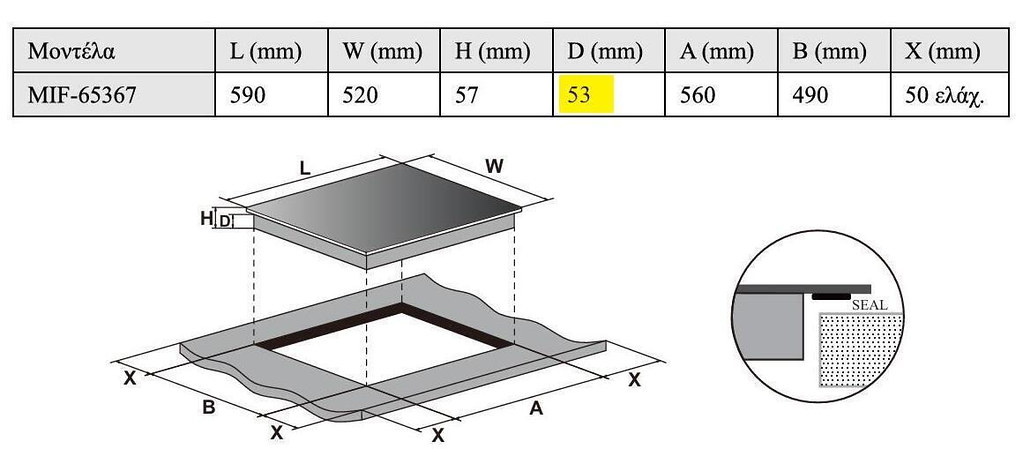 Διάσταση Εντοιχ/μού5.3 x 56 x 49Χ5
