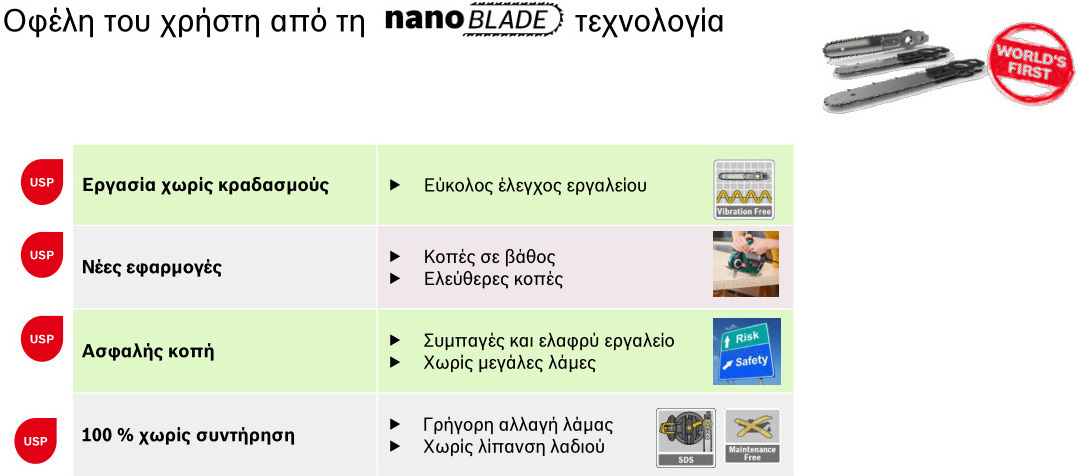 Included AccessoriesnanoBLADE Wood Speed 65 blade, transparent blade protection cover, carrying strap, charger