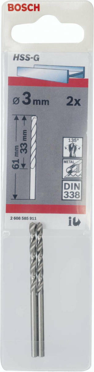 Product Name2 Metal Drill Bits HSS-G 3,0x33x61mm