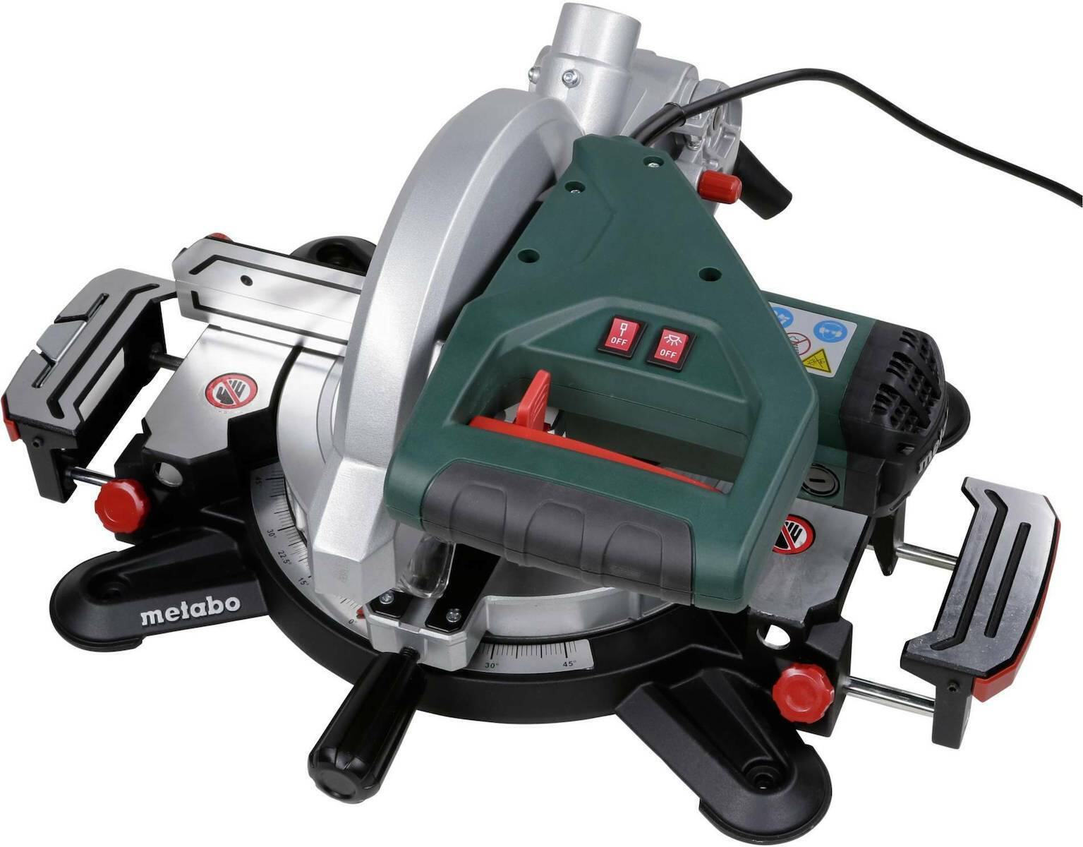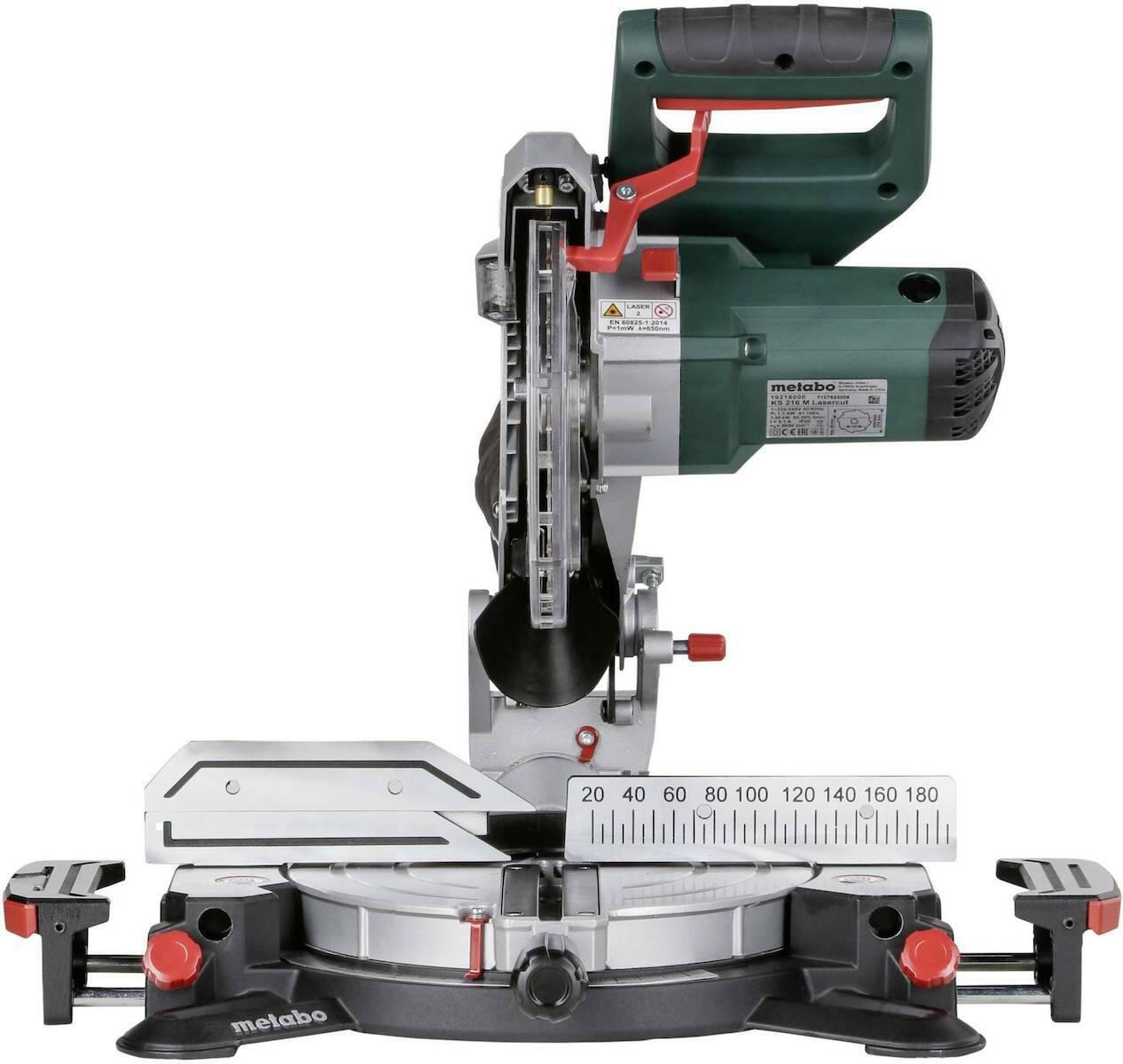 FeaturesLaser guide; LED work light / Precision Cut Line; extendable/removable side table extensions; length guide; material clamp; saw head lock; spindle lock; dust extraction; ergonomic handles