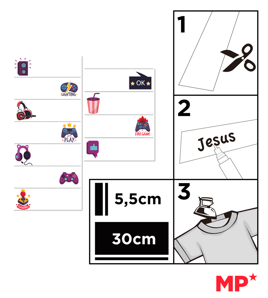 Θερμοκολλητικές ετικέτες ρούχων ιδανικές για την σήμανση προσωπικών αντικειμένων όπως ρούχα, πετσέτες, καπέλα κ.α., σε διάφορα σχέδια με θέμα gaming.