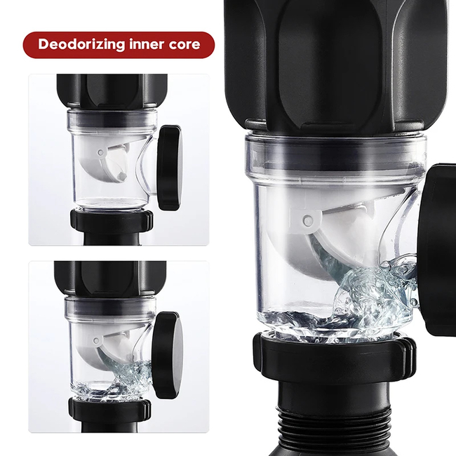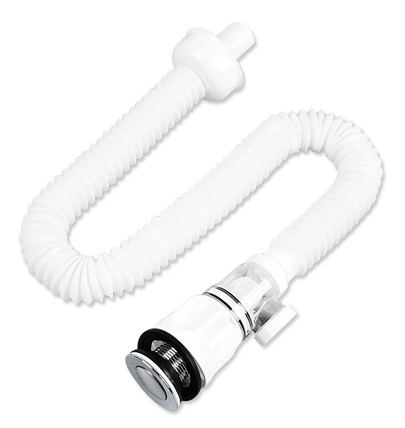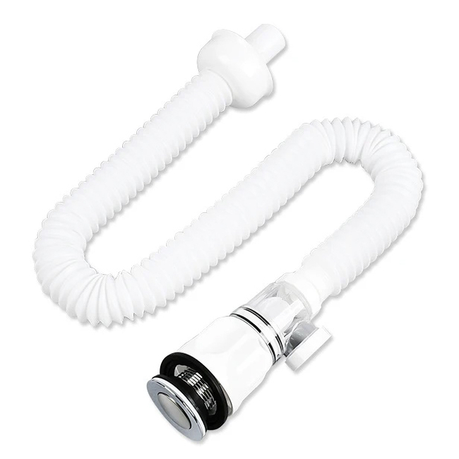 Εύκαμπτο πλαστικό σιφώνι, με βαλβίδα από χαλκό και καπάκι με μηχανισμό pop up, κατάλληλο για νιπτήρες μπάνιου ή κουζίνας. Εξοπλίζεται με δοχείο stopper το οποίο είναι σχεδιασμένο να συγκρατεί τις τρίχες, αποτρέποντας το φράξιμο του σωλήνα, ενώ, διαθέτει και 2 εξόδους διοχέτευσης του νερού (προς τα κάτω & προς το πλάι) για την ιδανική τοποθέτηση σύμφωνα με την διαρρύθμιση του χώρου σας.