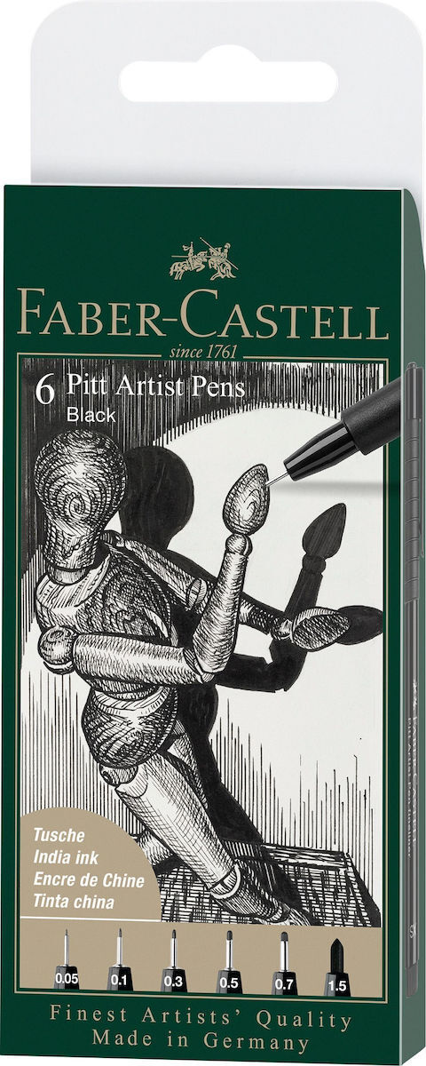 Faber Castell Pitt Artist Pen Wallet of 6 Black Pens