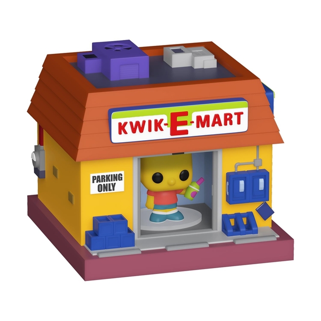 Crafted with precision, this unique set is part of the Bitty Pop Towns collection, transforming the popular POP figures into charming miniatures. The intricacies of Bart Simpson's character and the detailed design of the Kwik-E-Mart highlight the quality of this collectible.