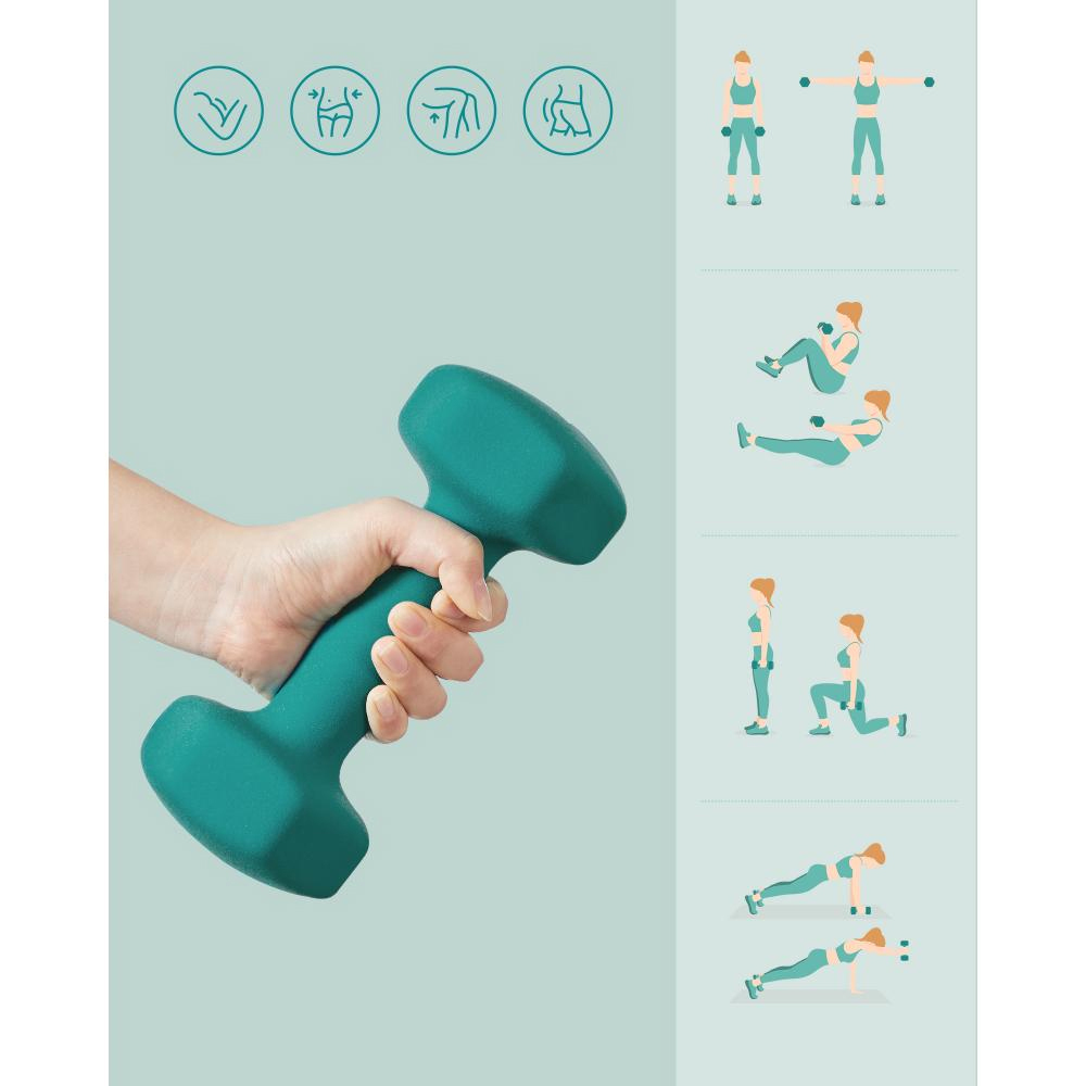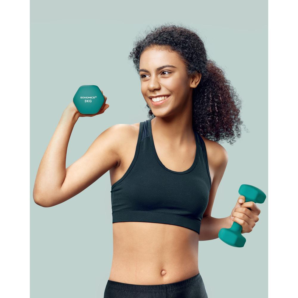 SONGMICS Dumbbells Set of 2 Dumbbells 3 kg Turquoise Green