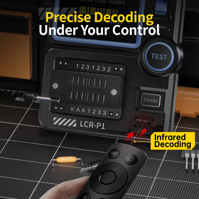 Το LCR-P1 είναι ένα transistor tester υψηλής ακρίβειας, πολλαπλών λειτουργιών. Αυτή η συσκευή επιτρέπει τον εντοπισμό και την ανάλυση της απόδοσης και των χαρακτηριστικών ημιαγωγών εξαρτημάτων όπως transistors, δίοδοι, triacs και field-effect transistors (FETs).